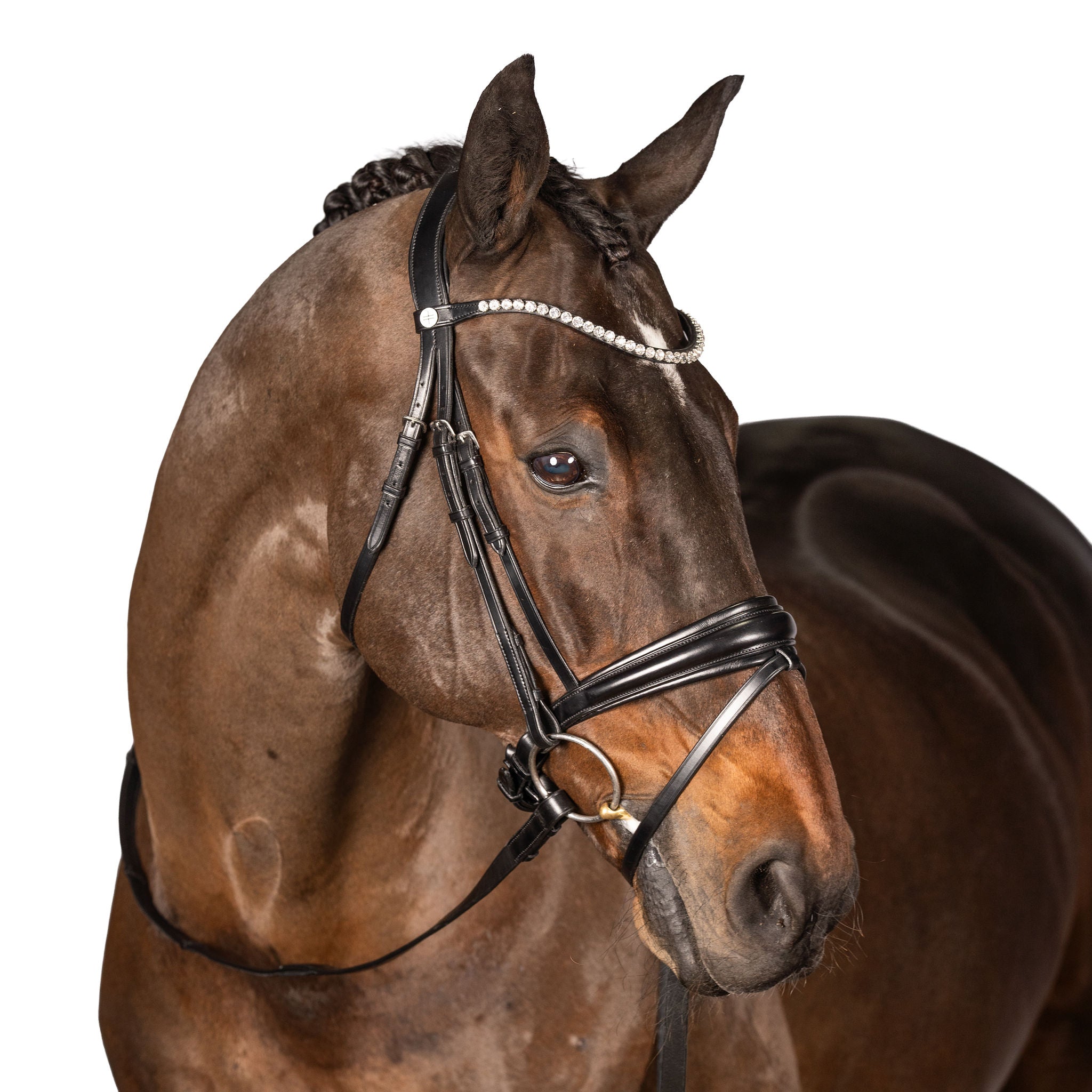 All of our horses go in Lara Tweedie bridles. The bridles are fantastic and beautiful and we don't go anywhere without them.