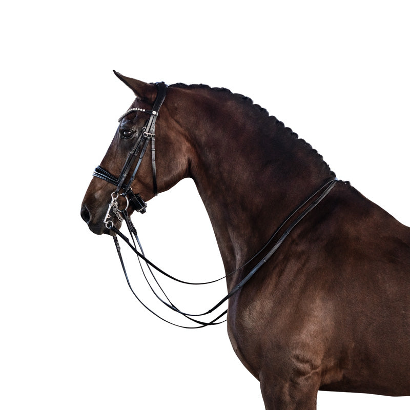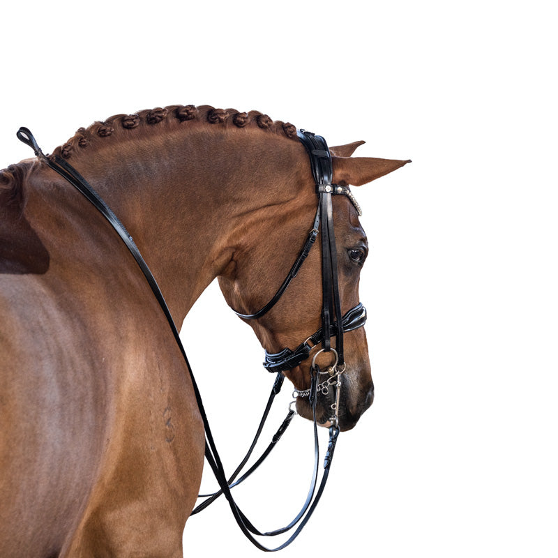 Selecting the Right Bridle: Before fitting a double bridle, it's essential to choose the right bridle that suits your horse's and your own needs. Consider factors such as material, quality, craftsmanship, and adjustability. Ensure that the bits, brow band, and cheek pieces are of high quality and suitable for your horse's mouth and head shape.