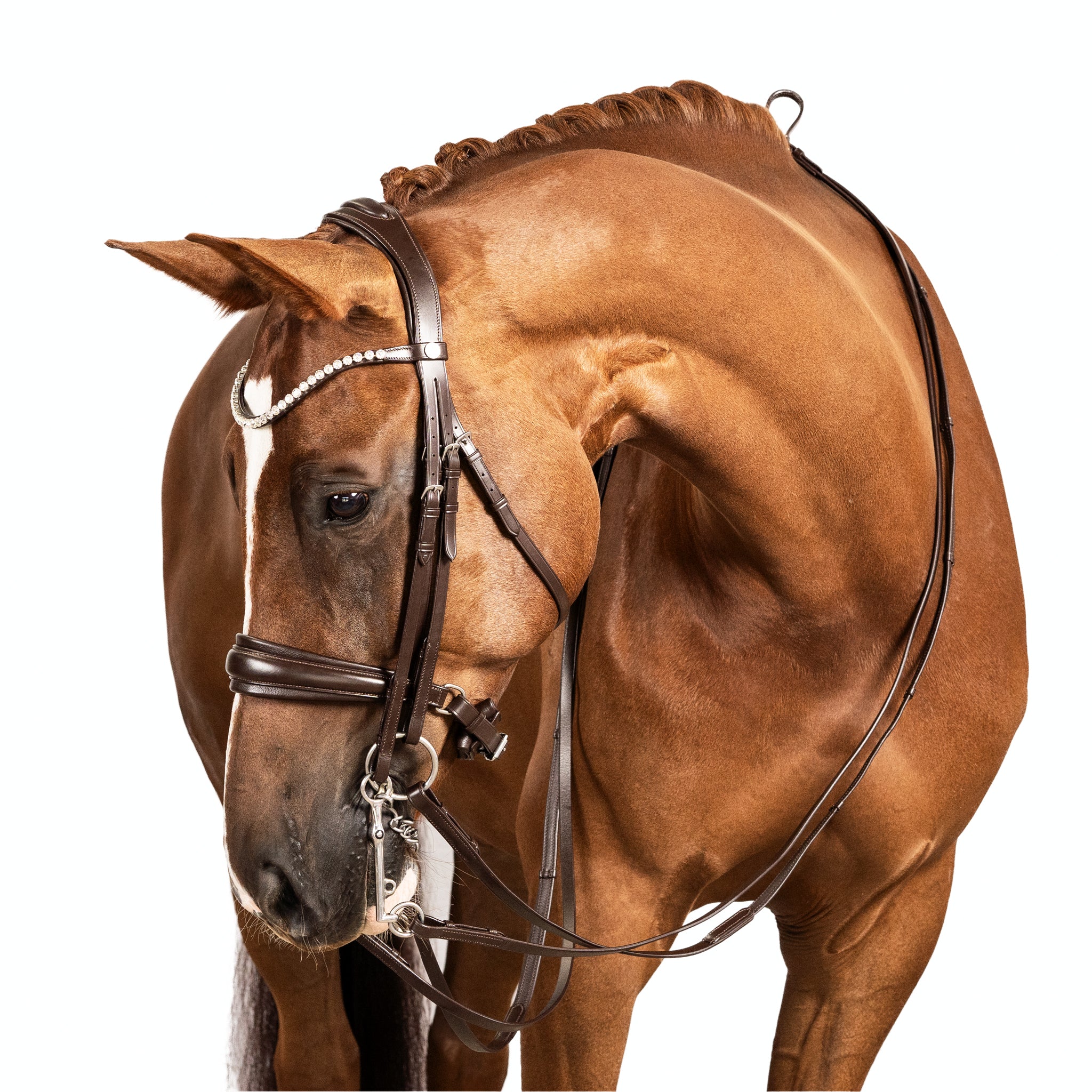 Final Adjustments and Testing: Once all the individual components are properly fitted, assess the overall balance and comfort of the bridle on the horse's head. Check the cheek pieces, noseband, brow band, and throat latch for appropriate adjustments, allowing freedom of movement while maintaining control. Perform various exercises and movements to ensure that the bridle is comfortable and doesn't impede the horse's performance.