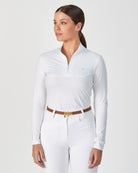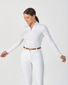 In feather light, no cling fabric our limited edition long sleeve competition top combines elegance with performance. We cut this competition top to a hip grazing length so you can style it tucked in or out. You'll look perfectly put together however you wear it.