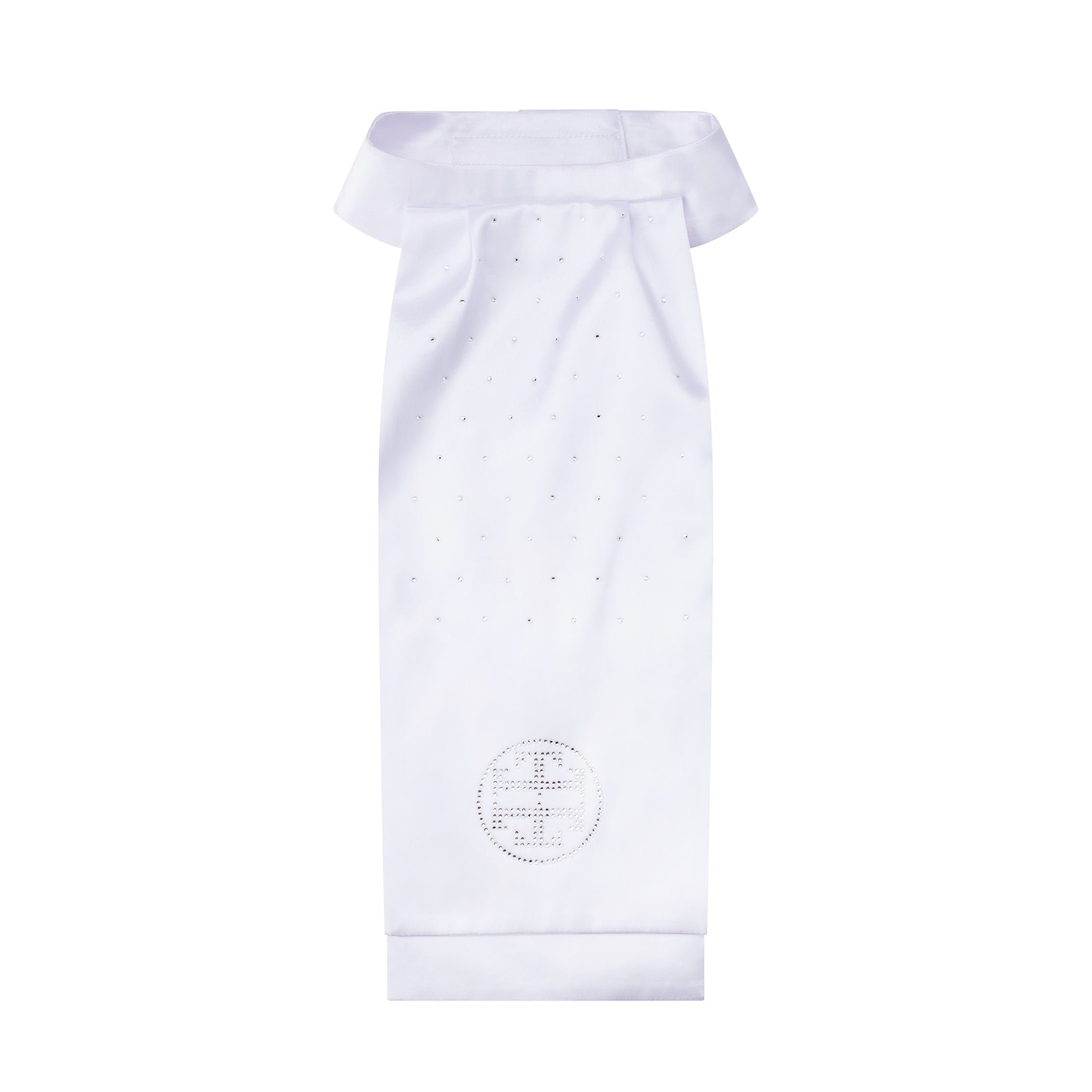 Details: Repeating hot fix crystal pattern with hot fix crystal logo.