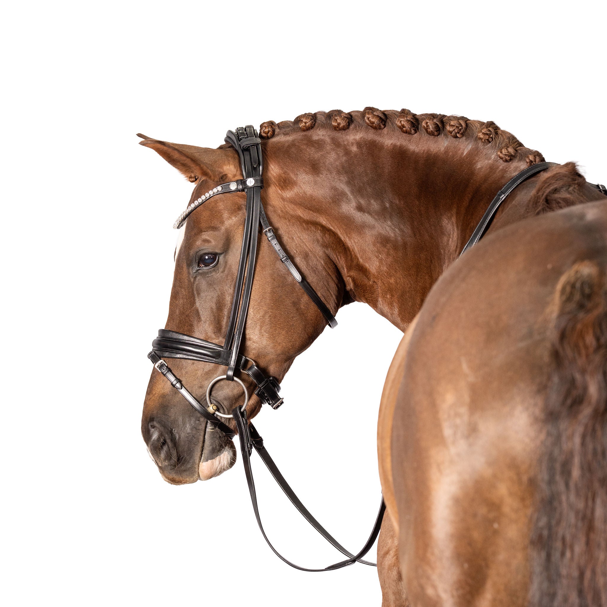 The Lara Tweedie anatomical snaffle bridles have been designed in conjunction with world renown international dressage rider and trainer Catherine Haddad-Staller. Constructed from the finest English and Italian leather the LT dressage bridles are produced to exacting standards.