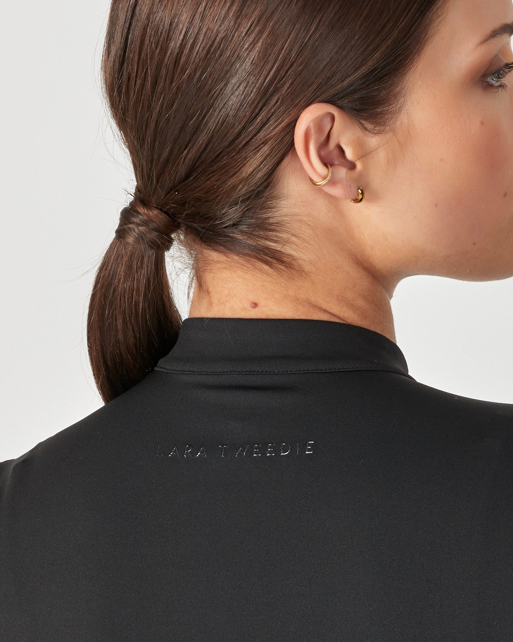 Details: Black LT logo badge on front and black Lara Tweedie tonal logo on the sleeve.